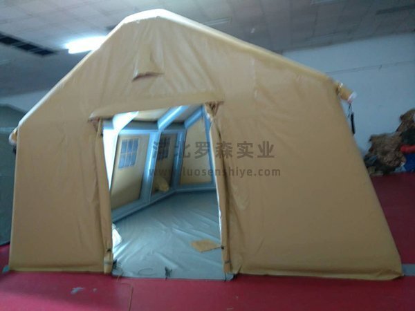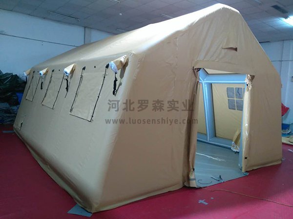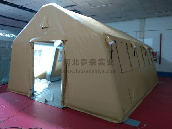具有結構簡潔、耐折、穩定性好、抗風、抗紫外線、防雨、成型快等優點,抗風6~8級、適溫范圍-30°~+65°、靜水壓≥16kpa、防地表水230~400mm、充氣時間5-8分鐘(帳篷搭建完成)。主要用于隊伍、醫用、救險救災、消防等。